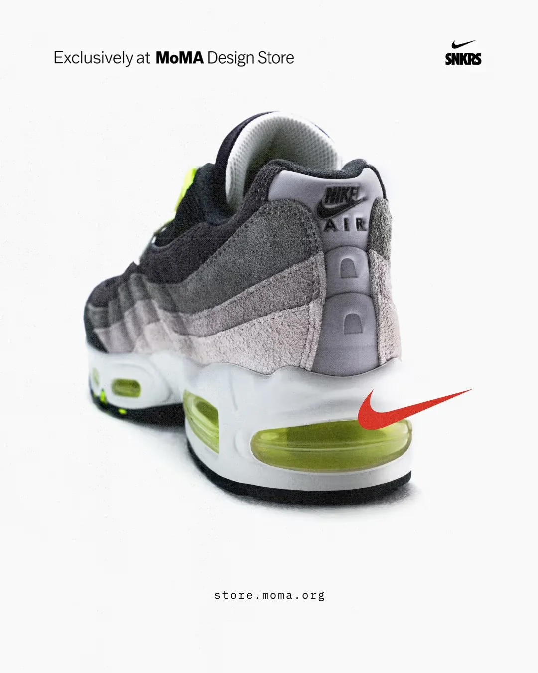 To celebrate the 30th anniversary of the Air Max 95, we brought Sergio Lozano’s original sketch to life as a limited-edition silhouette, available only at the MoMA Design Store.